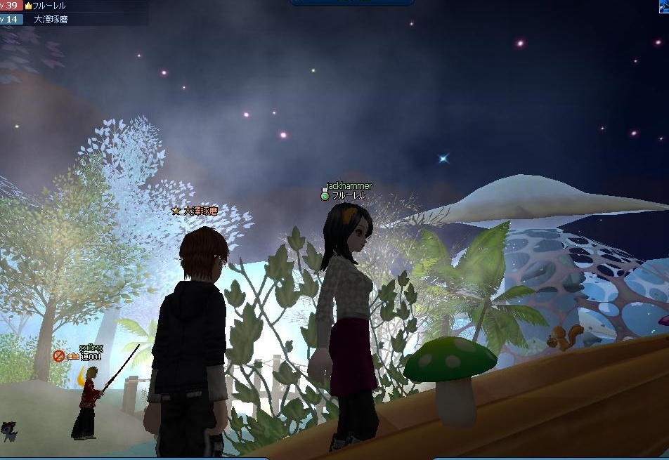 ビギのたくちゃんと一緒に 夜のきのこの森で滝に行ってみました。