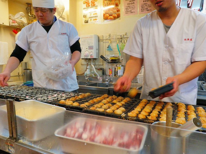 大阪の老舗「自由軒」のオムライスを食べた後、「会津屋」で「元祖たこ焼き」「ねぎ焼き」「ラヂオ焼き」3種盛りを食べましたとさ まぃぅ―( ´)艸(` )―♪