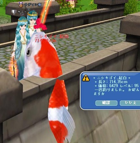 頭タオルの乗ってないLv95ニシキゴイ_紅白ゲット。