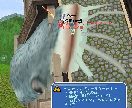 そしてちょっと前の長さイベのときにも釣ったことのあるLv97レッドテールキャットゲット・・・。