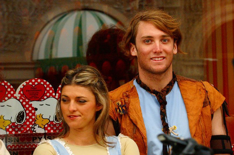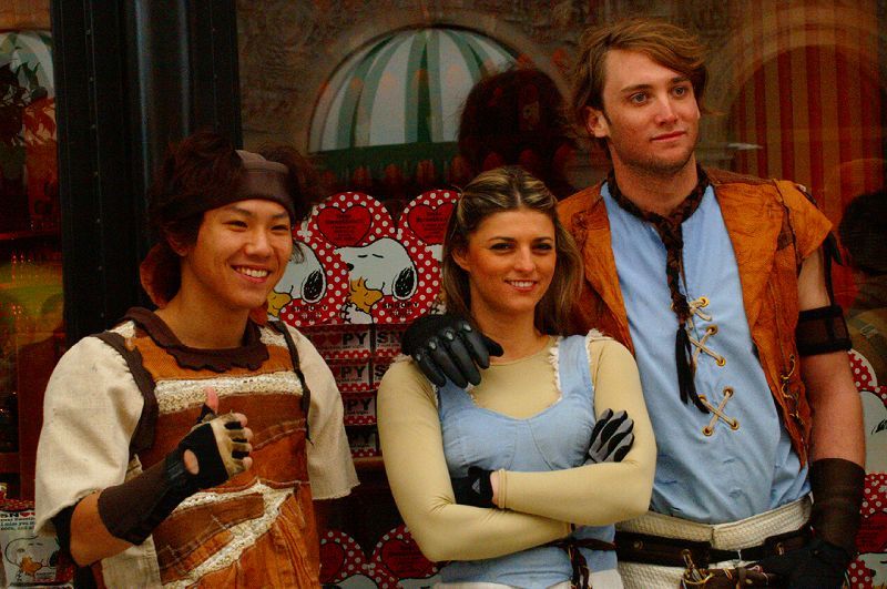 こちらは、パークに入ってすぐの「ハリウッドエリア」大天井(キャノピー)下に出張中の「ウォータ・ワールド」出演キャストによるスペシャルグリーティングで、「要塞アトール」のマリナー・ヘレン・保安官チームですが、この先を「HDR」側に曲がった先では「スモーカーズ」のディーコン達が出張ってきてます∑(゚д゚;)