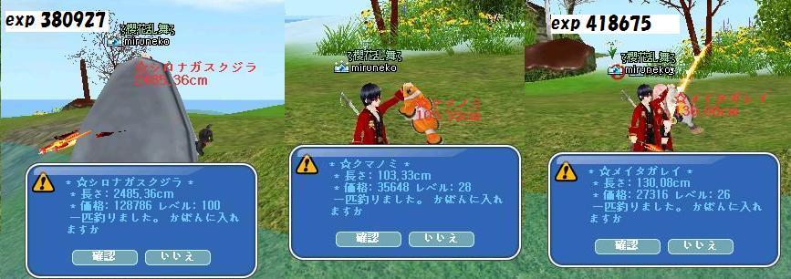 魔法とPT状態と装備が違うのでまだちゃんと比較できないのですが、ランダム魚の獲得経験値はLv関係なく一定かも??販売価格はLvによって大きな差があるんですが・・・・経験値は0.05%くらいあがってます