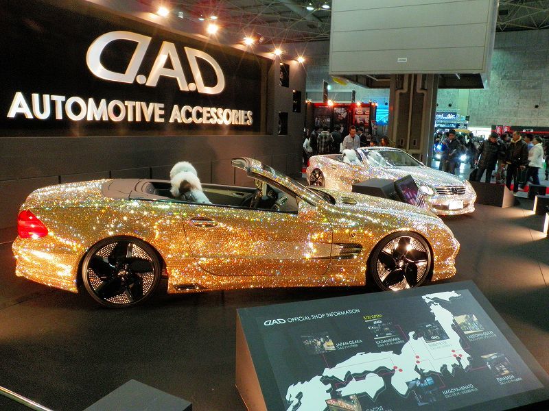 珍しいってか、まだコレで引っ張るのって言う展示車両を成金趣味っぽい「スワロフスキー」を全面に張った「ベンツ」・・・