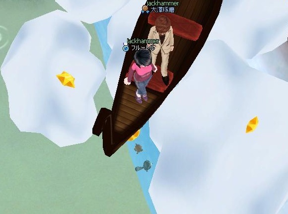 船に乗ったら ペット達が下に落ちてしまって