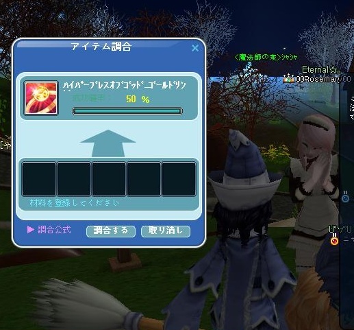 アイテムの調合確率がUP+。(ノ`・Д・)ノオォオォ。+゚