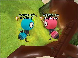 チョコレートをどっちが先に食べるか見つめ合うありんこ