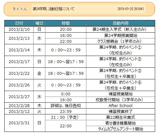 2月13日から授業が始まりますので、まずは日本版のイベントスケジュール。