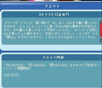 で、調合用のカカオ等が欲しかったのでチョコA・Bを購入し釣ってみる