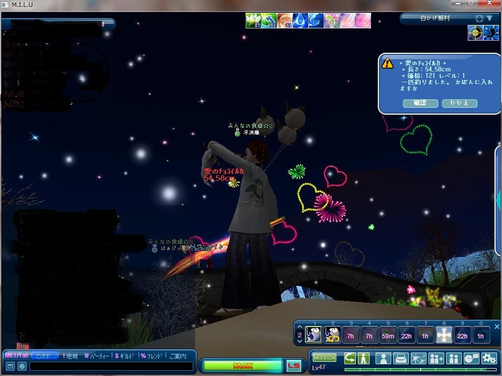 毎度 重くて落ちる人もいるけど、x'mas 正月ぶりの花火でした^^