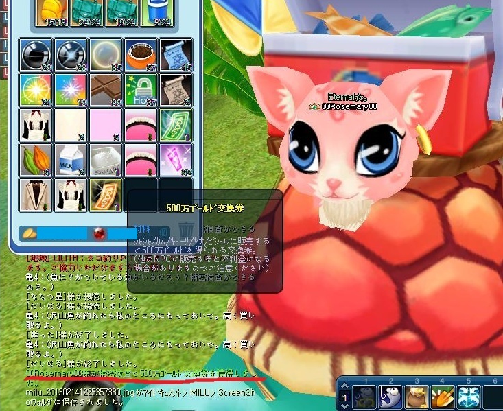チョコイルカから、500万G出ました♪