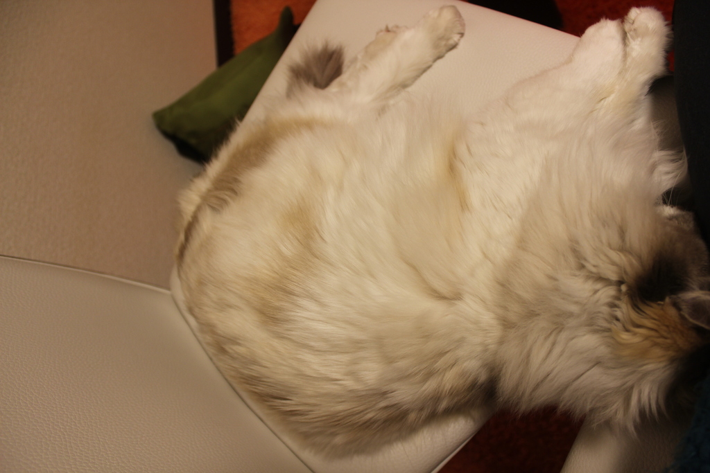 1つの椅子に収まりきらず、隣の椅子も占領していますw