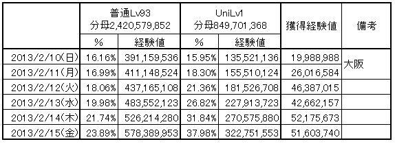 この時点で経験値を見ていると、普通のLvの獲得値とUniLvの獲得値はまったく