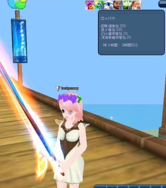 このスキルのおかげか、順調に経験値があがり深海魚で58UP確定^^