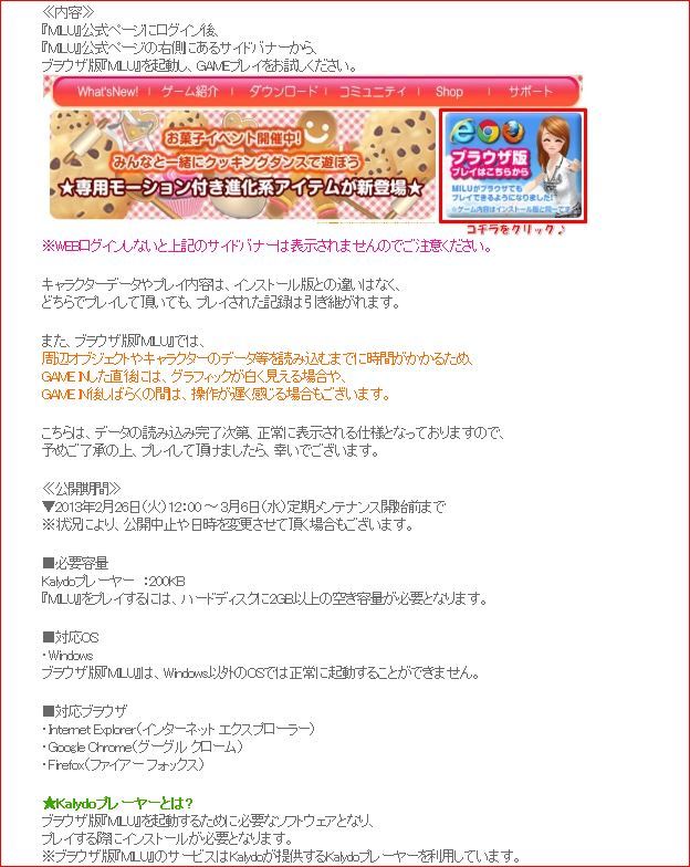 ブラウザ版ミル ベータ公開でし。今までとの違いはインストすること無く