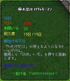昨夜落ちる前に、露店で残耐久4時間のEV羽お出かけクッキーマン羽を見かけて購入。