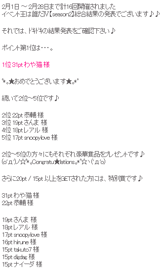 ひるね・・6位だったw