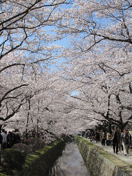 京都の銀閣寺道の桜並木です