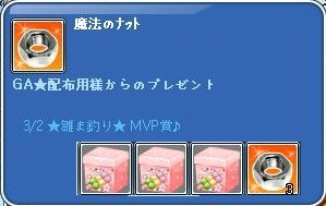 なんとMVP。一番いっぱい3並びの魚を釣った3人の一人でしたw