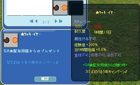 ★クッキーイヤー(200-0-5、耐久1日)が飛んできましたw