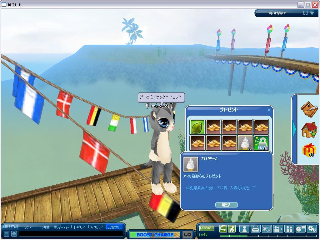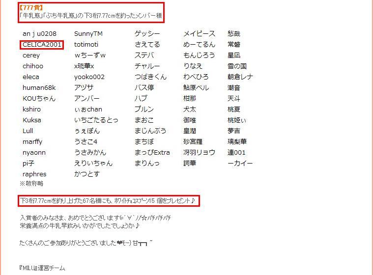 2013年3月8日(金)18:00 ~翌(土)17:59迄開催されてた「牛乳早飲み大会」でしゅが・・・∑(゚д゚;)ナンと、気付いていなかったってかイベント開催をチェックしていなかったから、コンな特別賞があったナンて・・・でもって、入賞していたナンて・・・ 贈り物付メッセージで教えてくれて、アリがとぅでした・・・┏○ペコ