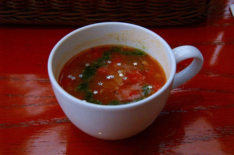 銀の星が浮いてるミネストローネもチャーリブラウン添えも( ・∀・) イイネ!