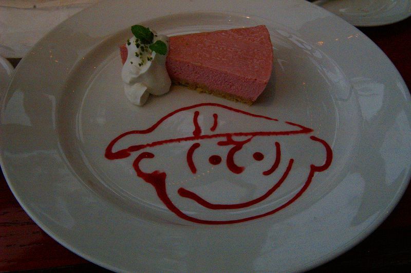 「本日のスープ/ミネストローネ」「焼きたてパン(お代り自由)/ハード&ソフトブレッド」「メインディッシュ/チキン・グリル」「ストロベリー・レアチーズケーキ チャーリブラウン添え」のセット (≧▽≦)ゞ