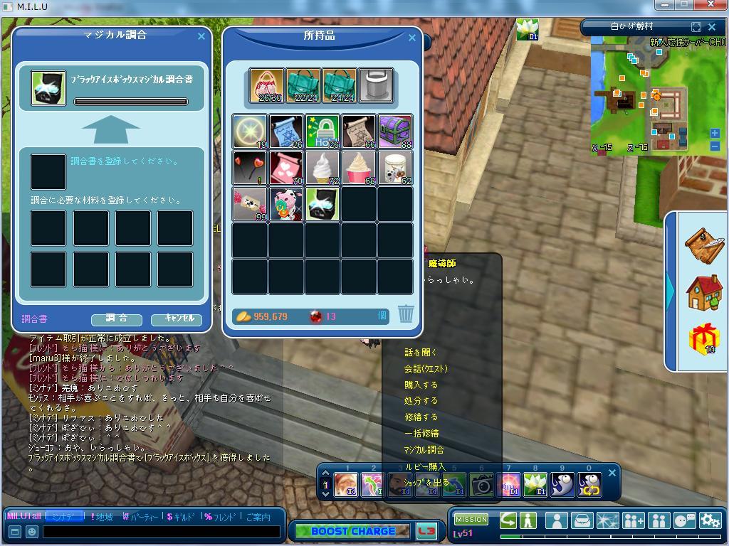 マジカル調合でブラックアイスボックスを手に入れました。1回で成功できました。よかったです。