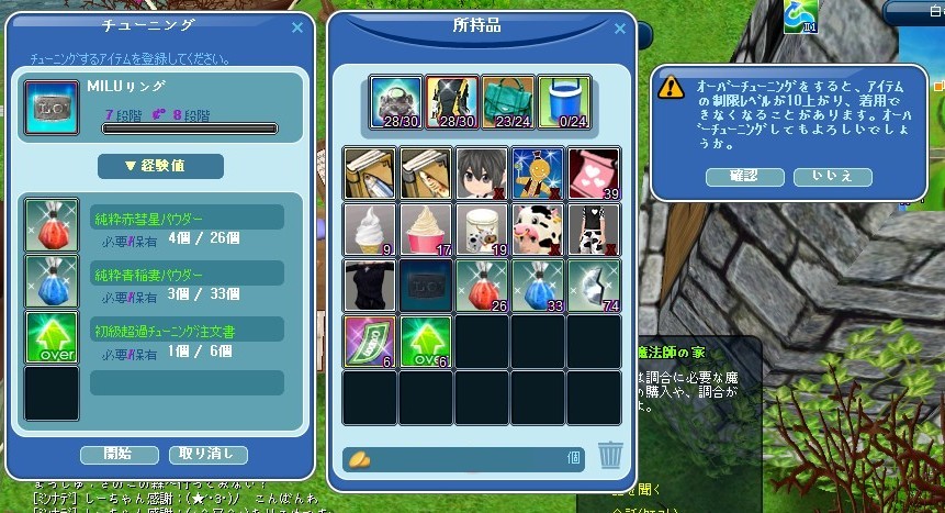 まぁ・・・・・とりあえず今装備しているLv40フルチュンMILUリングをLv60までオバチュンしておくか^^;