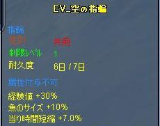 : 「EV_空の指輪」…耐久度7日、経験値30%、長さ10%、時短7%、修繕不可