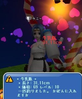 19:06 牛乳瓶31.11cmゲット。