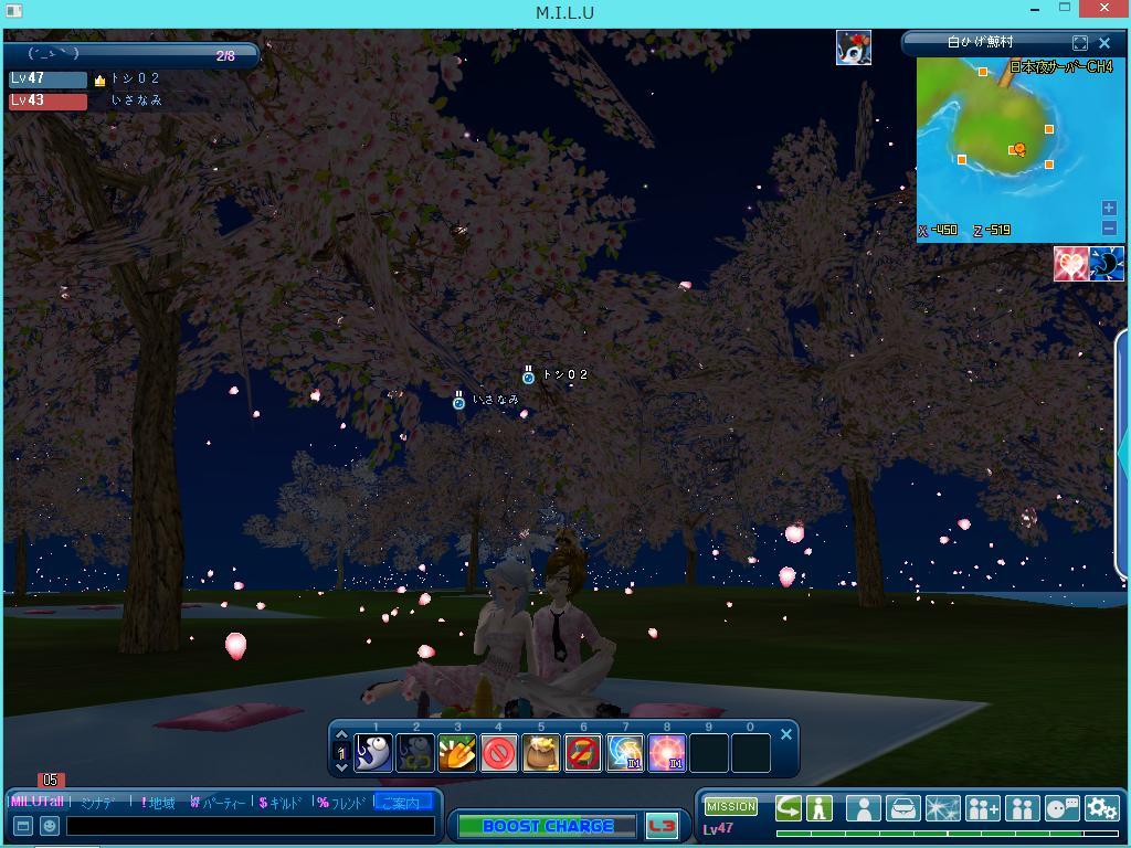 桜の季節ですね~ 和みますね~w てなわけで、二人でお花見です^^ だらりんと話してたら、こんな時間か( ゚Д゚) なみちゃん、イベ服ありがとうねー^^