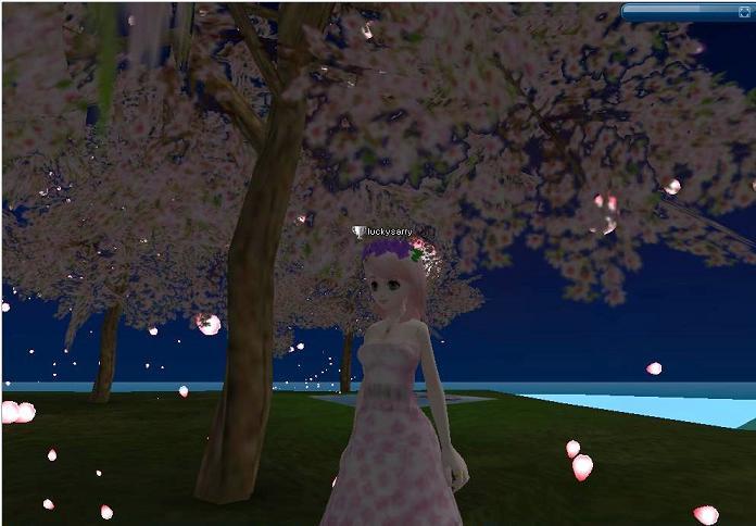 イベ王の時、イケスからキラキラ光る桜が見えて