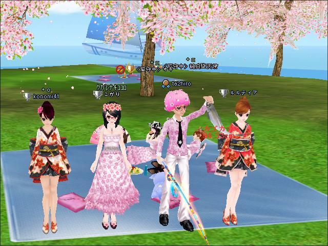 すみません、うちの両親です。花見で一杯がそのまま酔い潰れちゃったようです。