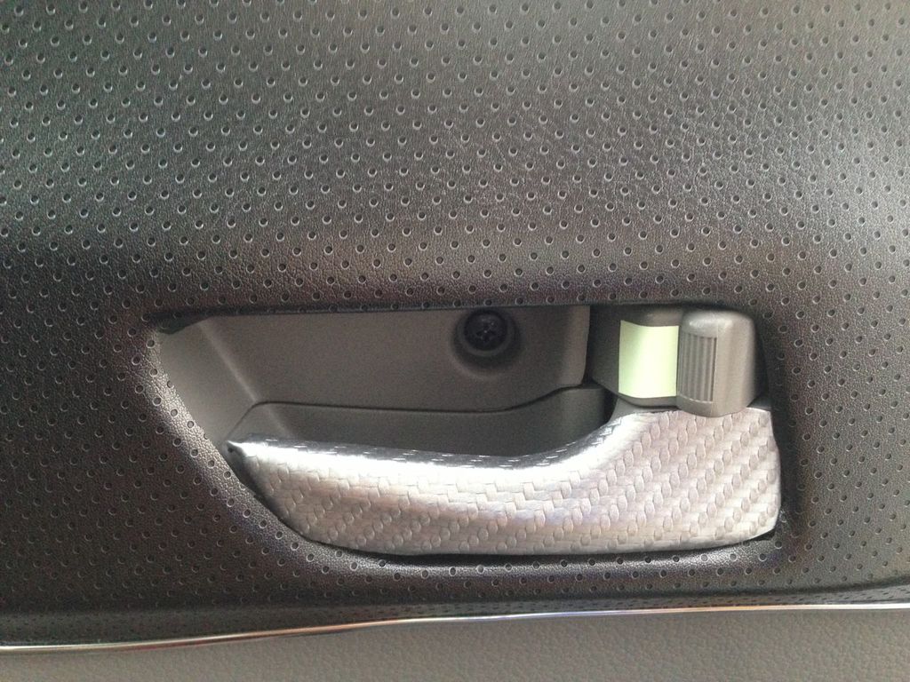 ドアノブにカーボンを、そしていままで鍵穴につけていた蛍光シールを、ロックノブにつけてみましたw