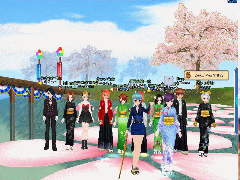 水面に浮かんだ桜の花びらに乗っての卒業UPは とても印象に残る物だと思います^^