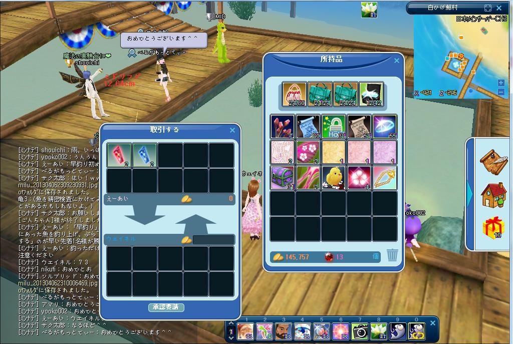 それとゲリライベントの早釣りで3回かけらもらいましたありがとうございました。