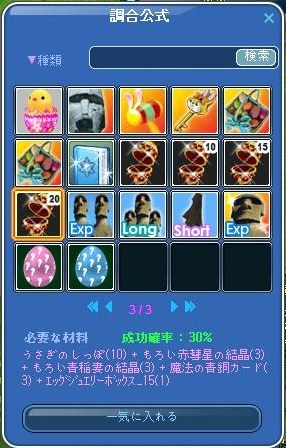 うさぎのしっぽ5個必要で 30%に挑戦する勇気がないなぁ