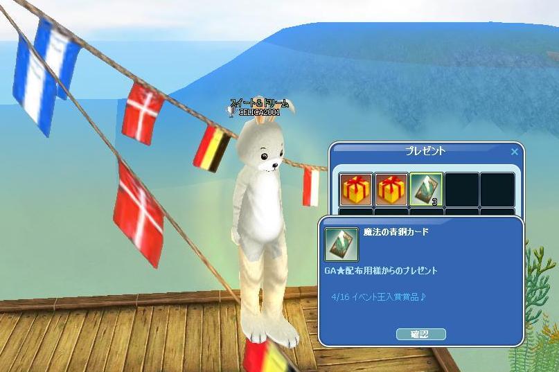 久しぶりに、ポイント2桁にぃぃ( ≧▽≦)b イベフグが、(;`ー´)o/ ̄ ̄~ >°))))彡掛かったのは知ってたけど、ジャストサイズじゃ無かったので1等賞は無いだろぉって言ってたのに・・・うれしい誤算でトップを頂きましたが、同サイズ4人って・・・しかも内輪がぁぁぁ (≧ω≦ )でもって、5Ptと青銅カード3枚 ゲ──(σ・∀・)σ──ツ!! でもって、ミドリフグ精密したら「金羽」になって久しぶりのミドリ文字で、その後W7が釣れた一日でした♪