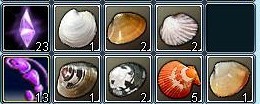 復帰した時には所持品にエビが13、貝が14、壊れアメジストが23でした。