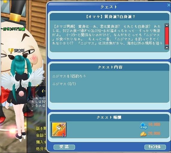 指定されたサイズの幻の魚を釣るイベントです。