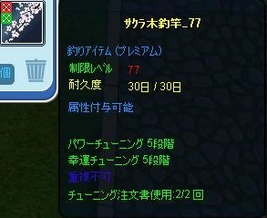 メンテ明け、特にこれと言って調合したい物はなかったので、前回の2段階キャンペで2-2にしていた77竿のチュンに行きました(`・ω・´)