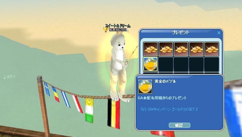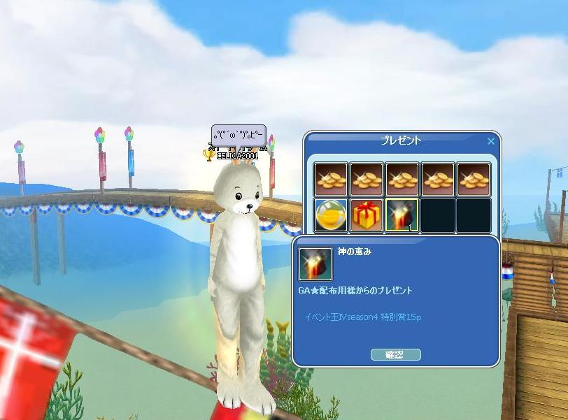 ホント、不必要な竿ばっかくれるんだよなぁぁ><先日のカーボンロッドに続き今度は竹竿・・・他には、プレボに数点の配布品が(≧▽≦)ゞ 金コイの奇数ぞろ目で貰える「金泡」と、4月のイベ王ポイント報酬(4Pt足りなかった><)の「神の恵み」と皆勤賞「青銅カード×10枚」・・・