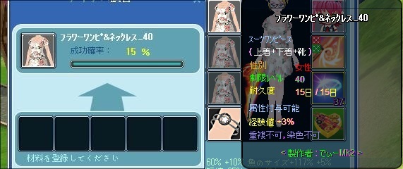 まずはフラワーワンピ&ネックレス_40の修繕可ですが、3回目で成功とまずまずの結果でした。