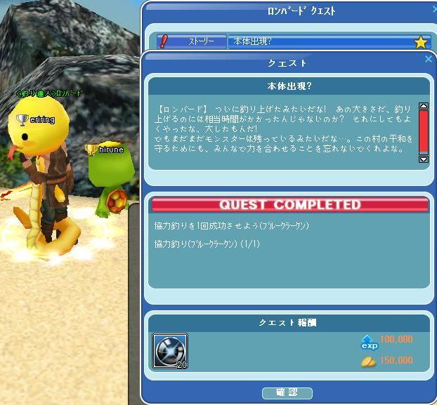 無事に、クエ完了v(。`・∀・。)vィェィ♪ もう、残ってるクエないぞぉ~(。-∀-)ィヒ♪ ありがとうございました☆