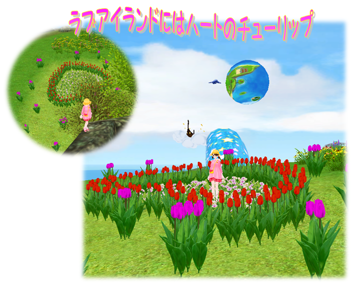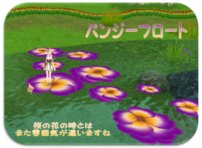 セシリアの泉の周囲はチューリップの線路とパンジーフロート