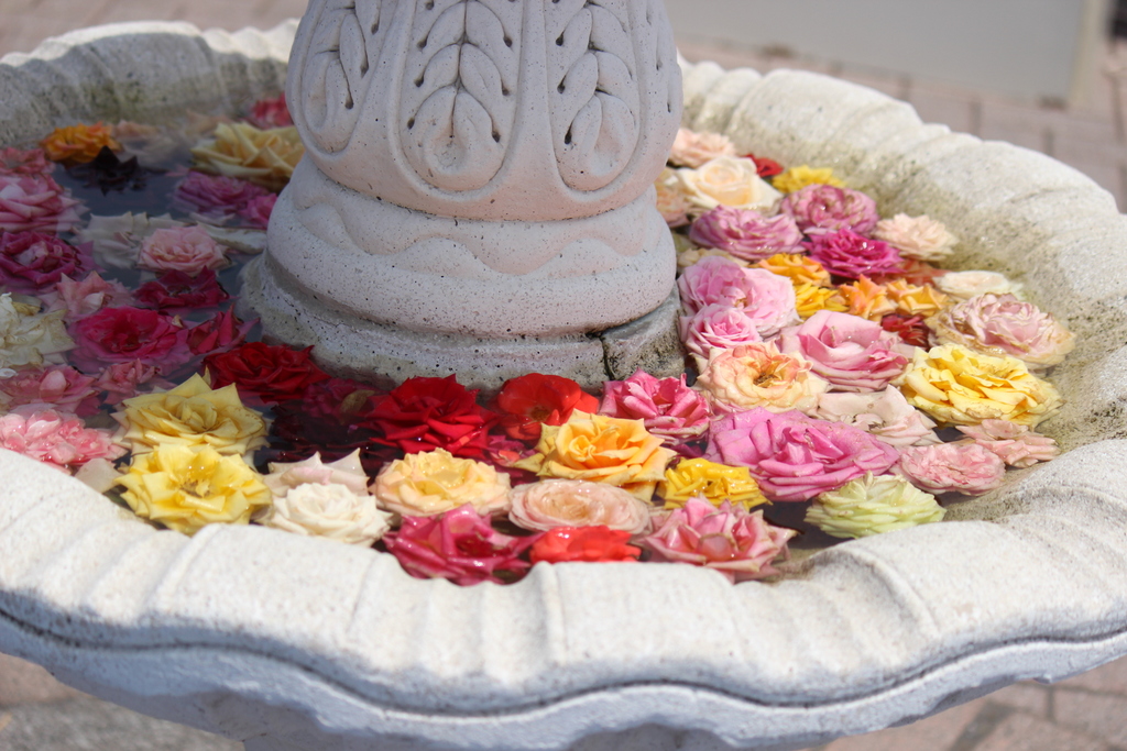 水盤が2段になっていて、もう1段上にもバラが飾られていました☆