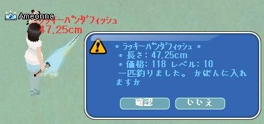 リボン付いたパンダが釣れてSSを撮って喜んでいたら