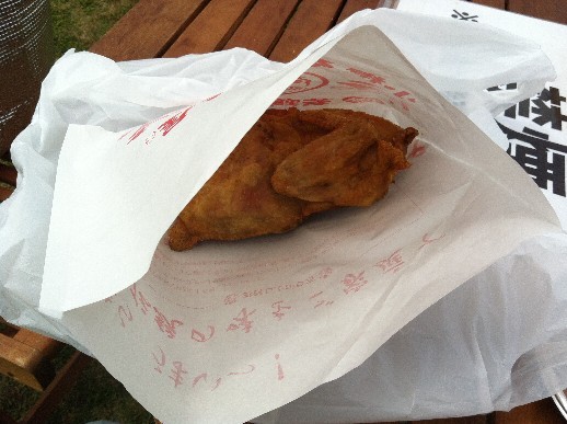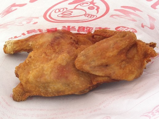 小樽では伝統的な味だそうで、丸の若鶏を縦半分にばっさり切って、そのまま揚げたもの。