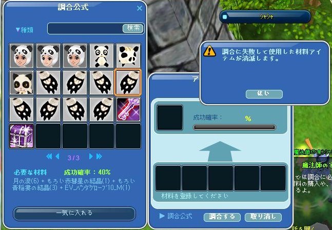 でも、御昼に露店でキンコジを発見^^夕方にイベ服と手袋を作成