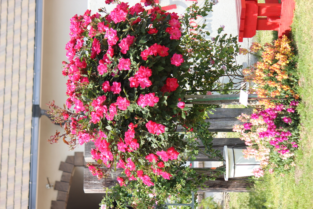 スタンド仕立てのバラは足元の花との組み合わせで色んな